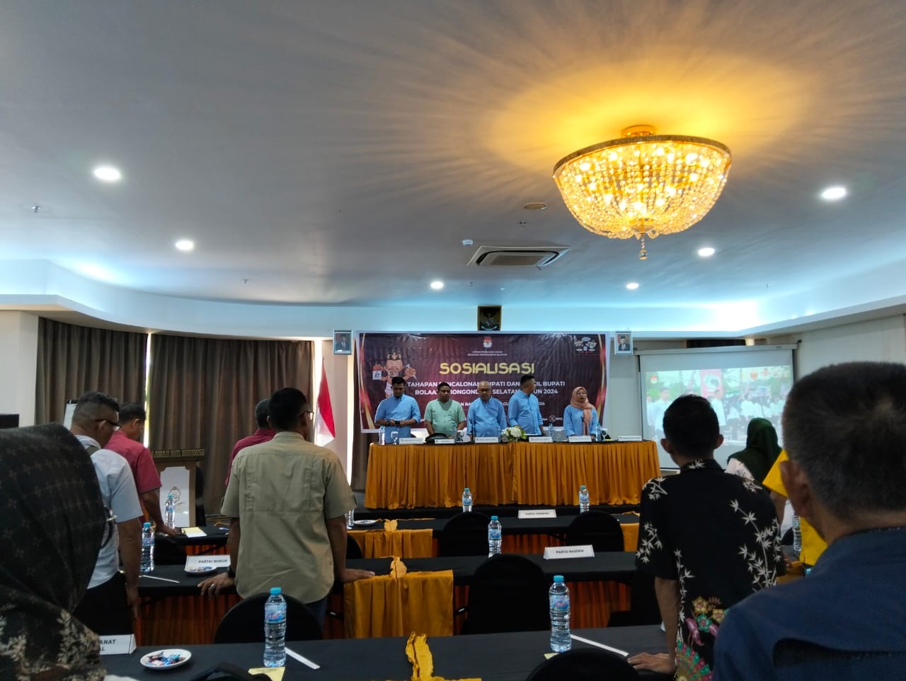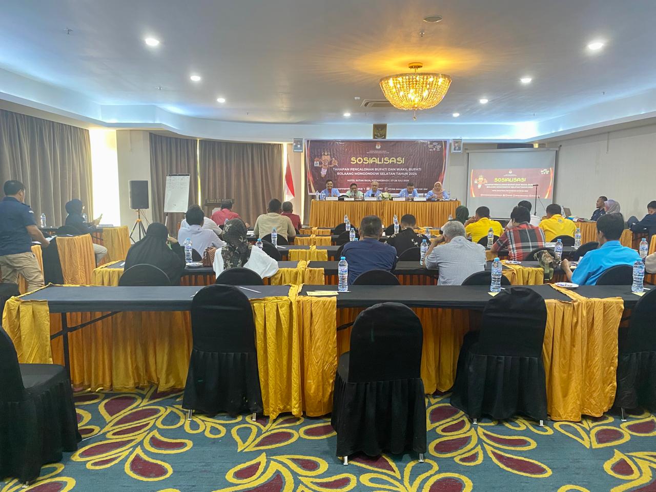 Kanalsulawesi.com, Kotamobagu – Komisi Pemilihan Umum (KPU) Kabupaten Bolaang Mongondow Selatan (Bolsel), menggelar Sosialisasi tahapan pencalonan Bupati dan Wakil Bupati Tahun 2024.