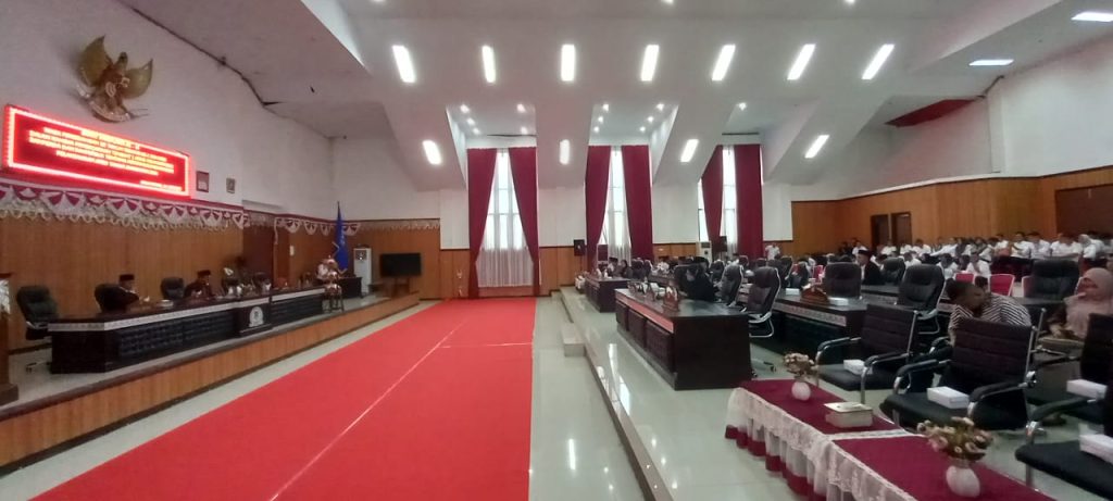 Paripurna ini dipimpin langsung oleh Ketua DPRD Kabupaten Bolsel, Ir. Arifin Olii dan dihadiri oleh Bupati, H. Iskandar Kamaru, S.Pt, M.Si, serta segenap anggota DPRD, para Asisten Setda, Staf Ahli dan pimpinan OPD di lingkungan Pemkab Bolsel.