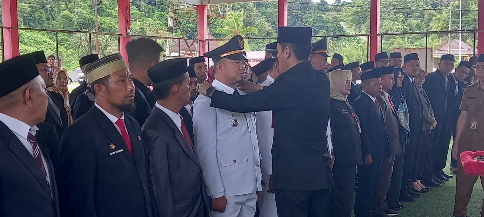Acara pelantikan turut dihadiri oleh **Sekretaris Daerah Marzanzius Arvan Ohy, S.STP, MAP, Plt Asisten III Setda Rikson Paputungan, S.Pd, M.Si, serta para kepala Organisasi Perangkat Daerah (OPD).