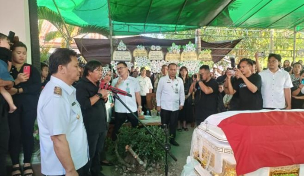 Wabup Dony Lumenta di dampingi istri Ny Syliani Pangalila hadiri Prosesi pemakaman berlangsung pada Selasa (15/10) di rumah duka, Desa Uuwan Kecamatan Dumoga Barat. Ibadah dipimpin oleh pendeta Polak