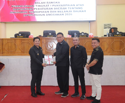 Usai pemaparan, dokumen resmi diserahkan kepada Ketua DPRD, Tonni Tumbelaka, disaksikan oleh kedua wakil ketua.