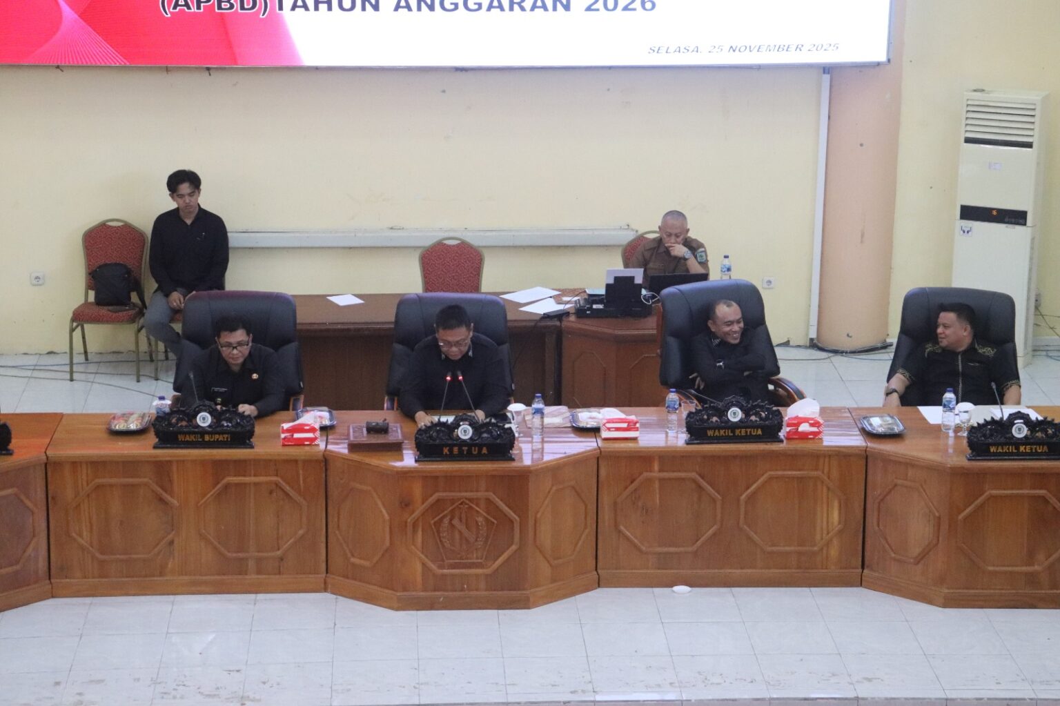 Setelah itu, rapat dilanjutkan dengan penyampaian dokumen Ranperda APBD 2026 oleh Wakil Bupati Bolmong, Dony Lumenta, yang memaparkan secara langsung isi dokumen tersebut di hadapan peserta paripurna.