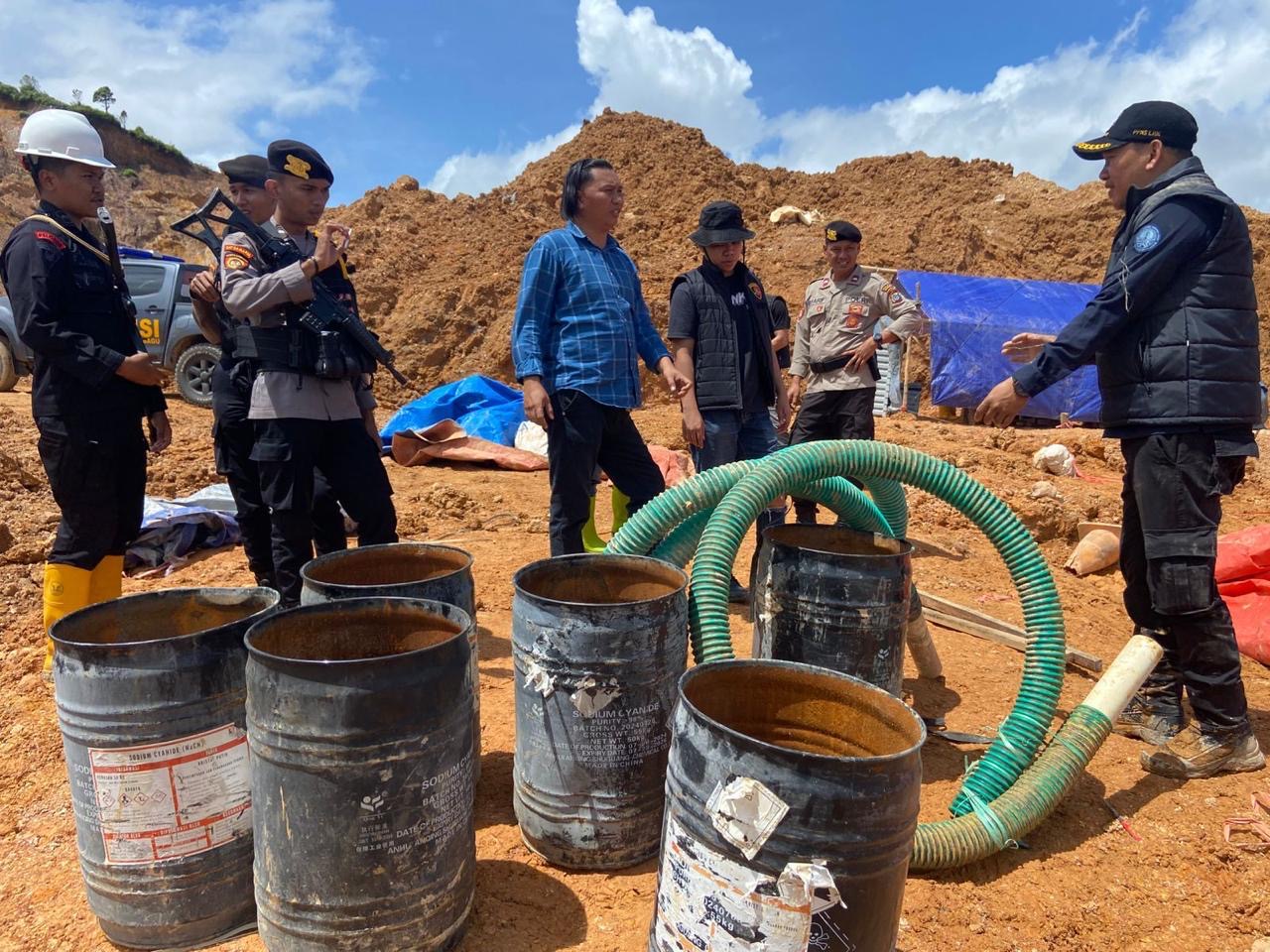 Menindaklanjuti temuan di lapangan, petugas langsung melakukan penyegelan serta mengamankan seluruh sarana dan titik kegiatan yang teridentifikasi. Peralatan yang diduga digunakan dalam proses pengolahan emas ilegal turut disita sebagai barang bukti.