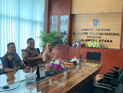 Rombongan diterima langsung oleh Kepala Kanwil BPN Sulut, John Wiclif Wufa, A.Ptnh., di ruang kerjanya. Pertemuan tersebut berlangsung untuk membahas dan berkonsultasi terkait status sejumlah lahan yang tersebar di wilayah Kabupaten Bolmong.