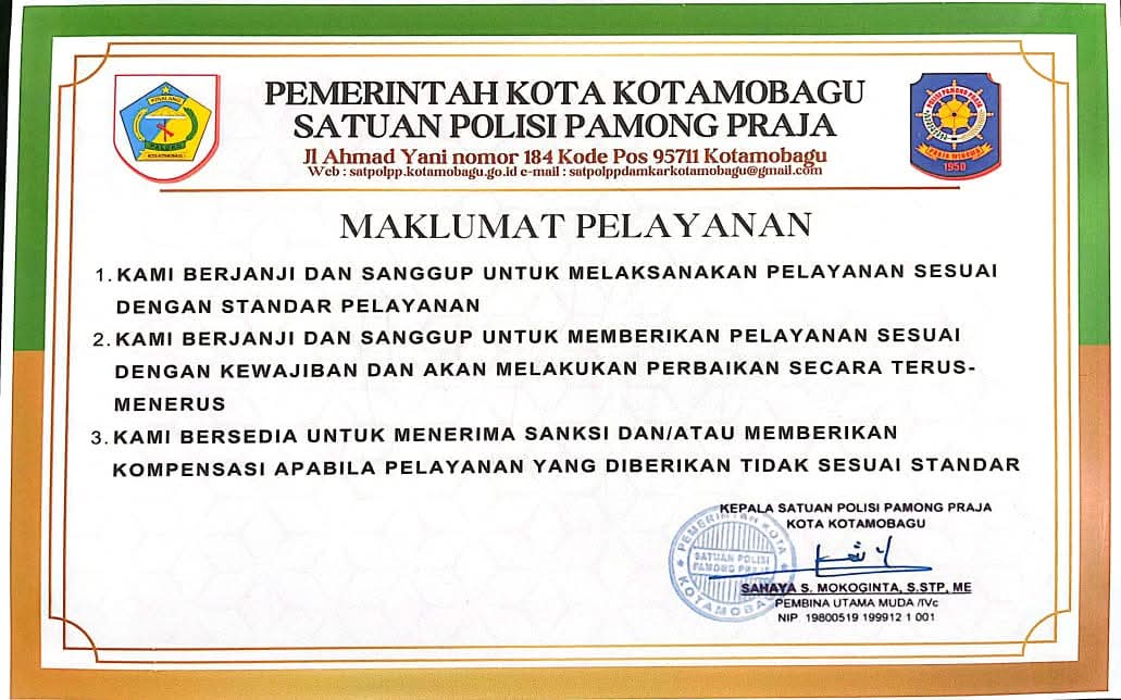 Dengan penetapan Maklumat Pelayanan ini, Satpol PP Kota Kotamobagu berharap dapat memperkuat kepercayaan masyarakat terhadap pemerintah serta memastikan setiap pelayanan yang diberikan benar-benar memenuhi hak masyarakat sebagai penerima layanan publik.*