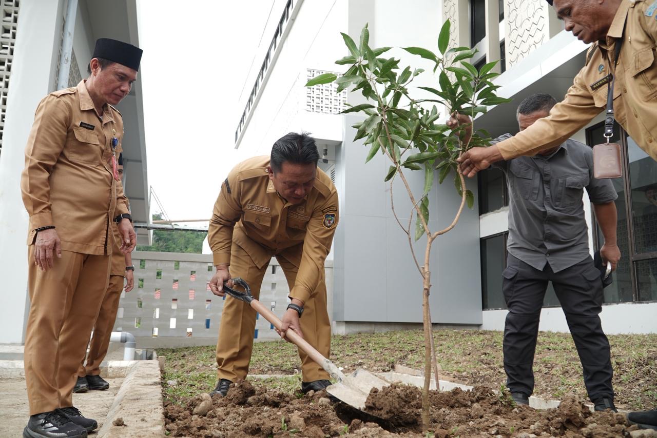 Diakhir kegiatan Bupati, Wakil Bupati dan Sekda melakukan penanaman pohon di area Rumah Sakit Umum Daerah Bolsel.